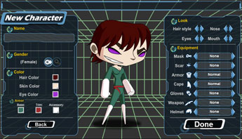 Depois de logar em sua Master Account, irá aparecer a tela de criação de personagem. Aonde você poderá escolher a armor, cabelo, boca, nariz, cor, etc do seu personagem.